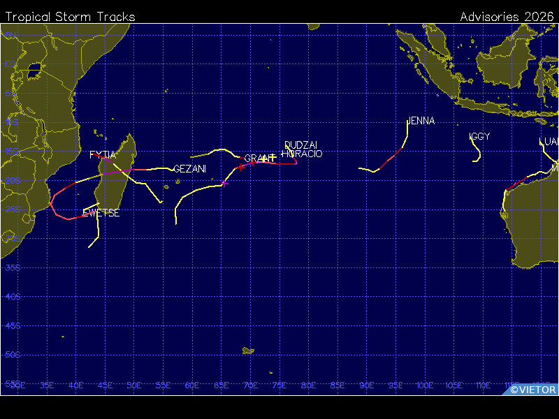 CYCLONE-4 DUDZAI Dates: 10-21 JAN 2026 Max Winds: 125 Min Pres: - Max Cat: 4 Tracking information |